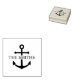Personalisierte nautische Gummi-Briefmarke mit Ankerdesign und Ihrem eigenen Familiennamen in einem klassischen Serif-Schriftart. Es bietet eine stilvolle Touch zu jedem Arrangement und ist ideal für Wiedersehen, Strandfeiern, Urlaubsgeschenkverpackungen, Party zum Thema Küste und besondere Festlichkeiten.