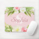 Trendy Mit Monogramm Pink Floral Name Mouse Pad. Ein niedliches und feminines Mousepad mit Monogramm und Namensvorlage. Die personalisierten Vorlagen sind von rosa, gelben und weißen Blume mit Blätter und Grünpflanzen umgeben, die auf einem rosa Hintergrund stehen.