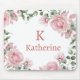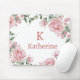 Rosa Rose Monogram Name Mousepad mit 'Year Established' benutzerdefinierter Inschrift.