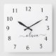 Name der Schwarz-weißen Skriptmonogramm-Girlanschr Quadratische Wanduhr