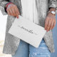 Erstellen Sie Ihre eigene personalisierte oder monogrammatikalische Drucktasche und nähen Sie die Schminktasche für Ihre Brautmädchen. Sie können die moderne mädchenhafte Swash schwarz handgeschriebenen Kalligraphie Skript Stil und Größe nach Bedarf anpassen. Ändern Sie die Hintergrundfarbe oder Textfarben, um Ihre Hochzeitspalette zu ergänzen.