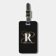 Dieses stilvolle, moderne und mit Monogramm Gepäckanhänger mit einem goldenen Schriftzeichen, das auf einem schwarzen Hintergrund einen fett weißen Vorgeschmack und Namen überlagert.