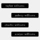 Einfache Namensschilder für Kinder und Erwachsene mit einem schwarzen Hintergrund.