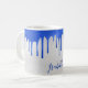 Imitate silber metallisch aussehender Hintergrund. Dekoriert mit königsblauen Tropfen, Farbe tropfend aussehen. Personalisieren und fügen Sie Ihren Namen mit einem handgeschriebenen Stil Skript geschrieben.