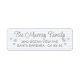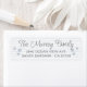 Script Familienname blau gestreifte Rücksendeadresse mit kleinen handgezeichneten Sternen. Moderne Retourenbeklemmenvorlage mit elegantem grauem Schriftart-Mix auf pastellblau-weiß gestreiftem Hintergrund. Fügen Sie Ihren Mailings mit diesen modernen Kalligraphie-Rücksendeadressen-Aufklebern eine Touch an der Küste hinzu. Entdecken Sie mehr meeresinspiriert Design-Vorlagen in Pastellfarben, Küsten- und nautische Wohngestaltung und personalisierte Geschenkideen, die mit Meeresluft-Liebe und einer sanften Meeresbrise gemacht wurden. © y.BEE SEA #zazzlemade #returnaddressLabel