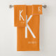 Terracotta Monogram Name Bath Handtuch Set erstellt von szdesign. Minimalistisches, aber stilvolles, personalisiertes Handtuchhandtuch-Set mit Terracotta Initialbuchstabe Monogramm und Name unter dem Buchstaben. Ein perfektes Geschenk oder persönliches Accessoire, das leicht zu personalisieren ist (klicken Sie einfach auf den Button 'PERSONALISIEREN Sie diese Vorlage').