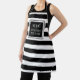 Stilvolle personalisierte Initialen in Monogramm-Schürze mit schwarz-weiß gestreiften Mustern mit Ihren Initialen und Familiennamen mit Ihrem etablierten Date Set in einem schwarz-borderten Quadrat mit klassischem Weißtext. Entwickelt von Thisisnotme©