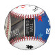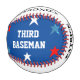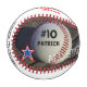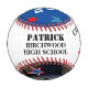 Baseball Abschluss Thema. Glückwunsch zum Grad und Jahr in Schwarz und Rot Typografie. Name des Spielers, Name der Schule und Nummer in der Mitte in schwarz auf weißem Hintergrund geschrieben. Name und Spielernummer auf weißem und rotem Baseball auf braunen Holzbrettern in schwarzer Typografie geschrieben. Frühjahrsball in Weiß gegen Schwarz-Weiß-Rechteck geschrieben (oder klicken Sie auf Anpassen, um Textfarbe zu bearbeiten, oder löschen Sie Rechteck auf Ebene links Seite). Spieler Position in Weiß vor blauem Hintergrund mit roten, weißen und blauen Sternen. Original Fotografie, Kunstwerk und Design © TamiraZDesign.