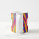 Personalisierte Kaffee-Tasse mit abstraktem Farbverlauf in Regenbogenfarben (hellgelb, orange, rot, lila, blau und grün) und leicht anpassbaren Namen und Monogramm in Rosa auf weißem Rundrahmen.