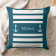 Nautisches Blau und Weiße Streifen Ankerzange Kissen mit dem Namen Throw Kissen. Sie können sich durch das Schreiben von Text (Name, Familienname, Monogramm..) personalisieren.