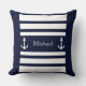 Nautisches Blau und Weiße Streifen Ankerzange Kissen mit dem Namen Throw Kissen. Sie können sich durch das Schreiben von Text (Name, Familienname, Monogramm..) personalisieren.