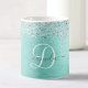 Dieses trendige, schicke Coffee Tasse Design mit hübschem silberglänzenden Glitzer auf aquamarin gebürstetem metallischem Hintergrund ist einfach zu personalisieren.