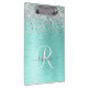 Dieses trendige, schicke Clipboard-Design mit hübschem silberglänzenden Glitzer auf aquamarinem, gebürstetem metallischem Hintergrund ist einfach zu personalisieren.