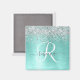 Dieses trendige, schicke Magnetdesign mit hübschem silberglänzenden Glitzer auf aquamarin gebürstetem metallischem Hintergrund ist einfach zu personalisieren.
