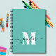 Girly Aquamarin Blue Schwarz-weiß Elegant Personalisiertes Sketchbook mit Ihrem Namen in Hand Lettered Script Schriftart Typografie und Bold Monogram Initial. Elke Clarke© Fügen Sie Ihren Namen, Ihr Monogramm oder Ihren Text über das Menü "Anpassen" hinzu.