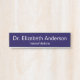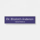 Dieses Türschild des Arztes hat zwei Linien weißen Texts. Sie können es bearbeiten, um den Namen und die Spezialität des Arztes anzuzeigen. Der Hintergrund ist dunkelblau.