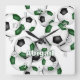 Name des Athleten auf grünen schwarzen Fußballbäll Quadratische Wanduhr