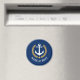 Ein Personalisierter Rundmagnet mit Ihrem Bootsnamen, Familiennamen oder beliebigem Text. Mit einem speziell entwickelten nautischen Bootsanker, goldenen Blätter und Sternemblem auf Marineblau oder passen die Primärfarbe einfach an Ihr aktuelles Thema an.