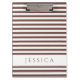 Die schwarz-weiß gestreifte MusterZwischenablage mit einem personalisierten Namensdruck auf Vorder- und Rückseite. Für die passende braune und weiße gestreifte Schreibwaren und weitere Farboptionen Karo aus der kompletten Streifenpapier-Kollektion unten und besuchen Sie Dots & Stripes Muster Design Studio von Maggie B für personalisiertere Schreibwaren.