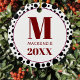 Schwarz-Weiß dalmatinisches Spotmuster mit einem modernen, einfachen Typografie minimalistischen Monogramm-Namen und Jahresdesign, das sich auf individuelle Gestalt umstellen lässt. Ein festlicher Winterurlaub in Rot, Schwarz und Weiß.