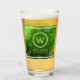 Mit diesem eleganten Pint-Glas, das Schneeflocken auf einem Imitat mit metallischer Waldgrün-Folie / ombre / moire Hintergrund enthält, verleihen Sie dem Jahresende- und Weihnachtsfeiern eine festliche Touch. Fügen Sie initial / monogram (oder logo), name, year oder custom text wie gewünscht hinzu. Umkehrung zeigt identisches Design. Design © W.H. Sim. Weitere Informationen unter zazzle.com/expressionsoccasions