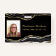 Elegantes und stilvolles, schwarz agate Marmorgeode-Design mit Imitaten goldenen Glitzer Details. Ändern Sie das Foto und die Details auf der Vorderseite und QR-Code Website Ziel auf der Rückseite, um anzupassen.