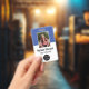 Name des Fotos des Mitarbeiters Logo Bar Blau und Ausweis