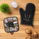 Name des Fotos in Monogramm, schwarz, mehrfarbig Ofenhandschuh & Topflappen-Set