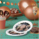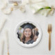 Abschluss-Papier-Teller, die Ihr Foto in einem weißen, welligen Rahmen und Ihren benutzerdefinierten Text als weißes Overlay über dem Foto darstellen. Die Randfarbe kann im Designwerkzeug angepasst werden.