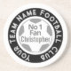 Ihr Lieblings-Football-Club Name auf einem Drinks-Untersetzer, sowie die Worte Nummer Eins Fan und der Christliche Name des Fußballfans.