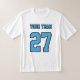 Eine weitere Sportuniform von JessicaAmber! Dieser T - Shirt ist in schwarz und hellblau mit fett formatierter Typografie im variantenreichen Stil gestaltet. Sie können Ihren Teamnamen, Ihre Teamnummer und Ihren Nachnamen auf der Rückseite hinzufügen. Sie können alle Teile bearbeiten, indem Sie auf die Schaltfläche Anpassen klicken. Machen Sie ein Set für Ihr Team, um im Stil zu gewinnen! ・ ・ ・ Für mehr sportliche Kleidung besuchen Sie mein Geschäft zazzle.com/jessicaamberartist ・ ・ Für Sonderbestellungen, schreiben Sie mir auf Zazzle.