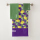 Aquarellmuster Zitrus Name lila grünes Bad Handtuch Set.