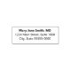 Diese Business-Briefmarke hat drei Textlinien. Sie können es bearbeiten, um eine benutzerdefinierte Nachricht wie den Namen Ihrer medizinischen Praxis und ihre Rücksendeadresse anzuzeigen. Die erste Zeile ist in einem kühnen Schriftart für den Namen des Arztes.