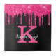 Name des Girl Black Hot Pink Glitzer Tropfen Monog Fliese