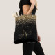 Glam Gold Glitter Elegant Monogram Tote Bag. Easily personalize this trendy chic tote bag design featuring elegant gold sparg glitter on black background. The design feys your handwritten script monogram with pretty swirls and your name.