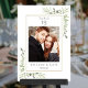 Diese elegante grüne Eukalyptus verlasse Tischnummer mit zarten Aquarellfarben-Blätter mit Ihrem besonderen Foto, Namen und Datum gerahmt durch eine goldene Grenze. Entwickelt von Thisisnotme©