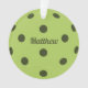 Ein einfaches und modernes mit Monogramm Design mit dem Namen Ihres Teamkollegen, Ihres Namens oder eines anderen Pickleball-Spielers. Grüne Farben bilden einen grafisch gestalteten Pickle-Ball. Ideal für die Feriensaison, als Teilnahmezeichen oder als Auszeichnung.