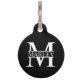 Behalt deinen Haustiersafe und verliert nie wieder mit diesem Begleiter-Tag personalisierte weiße Monogramm im klassischen Serif-Schriftart-Stil mit Box-Name in der Mitte des Monogramms auf schwarzem Hintergrund, mit Kontaktinformationen des Besitzers auf der Rückseite des Tags. Ideal für Hunde, Katzen und geliebte Haustiere.
