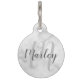 Behalt deinen Begleiter sicher und verliert nie wieder mit diesem Begleiter-Tag, der den Namen des Begleiters in grauem, modernem Script-Schriftart und Monogramm im hellgrauen, modernen Script-Schriftart-Stil als Hintergrund auf weißem Marmor-Hintergrund zeigt, mit Kontaktinformationen des Besitzers auf der Rückseite des Tags. Ideal für Hunde, Katzen und geliebte Haustiere.