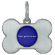 Knochenförmiges Haustierhalsband, das Sie mit dem Namen Ihres Haustieres auf blauem Hintergrund anpassen können. Sie können auch den Schriftschnitt, die Schriftfarbe und die Hintergrundfarbe im Design-Tool ändern. Bitte überprüfen Sie das Aussehen, nachdem Sie den Namen Ihres Haustieres eingegeben haben. Wenn Ihnen das Aussehen gefällt, können Sie jetzt Ihre Bestellung aufgeben. Wenn Sie den Namen Ihres Haustieres ändern oder neu positionieren müssen, passen Sie dies bitte im Design-Tool an.