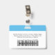 Dieses Abzeichen mit benutzerdefinierten horizontalen Mitarbeiternamen kann einfach mit Foto, Scan-Bar oder Qr-Code und Firmenlogo personalisiert werden. Ein einfaches Business-Design in hellblau-weiß-farbigen, vollständig anpassbaren Vor- und Rücken-Größen, serifenlose, einfache und moderne Schriftart und ein berufliches und klares Aussehen. Diese Standard-ID-Abzeichen sind mit einem Lanyard, einer Metallklammer oder mit einer Retraktable erhältlich. Mit dem Graphic Design Editor können Sie Ihre ID-Abzeichen-Karten individuell anpassen, indem Sie eine beliebige Hintergrundfarbe und einen beliebigen Schriftart auswählen. Keine Mindestbestellung.