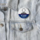 Schaltfläche Abzeichen mit Ihrem benutzerdefinierten Kandidaten und Jahr. Weißer Text, flankiert von Sternen auf blauem Hintergrund mit einem roten Streifen oben. Füllen Sie den Namen Ihres bevorzugten politischen Kandidaten aus und passen Sie das Foto an.