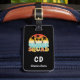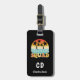 Ein schwarzer Hintergrund. Dekoriert mit einem Retro-Look Bild mit einem Sonnenuntergang, Palmen und dem Text: Cruise Squad. Personalisieren und fügen Sie Ihre Monogramm-Initialen und vollständigen Namen auf der Vorderseite. Zurück: Fügen Sie Ihre Kontaktinformationen hinzu.