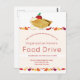 Eine Postkarte für ein Lebensmittel-Laufwerk, das von einer Organisation, einem Unternehmen oder einer anderen Gruppe gegeben wird. Dieses Lebensmittel-Laufwerk Postkarte verlangt nach nicht verderblichen und nicht abgelaufenen Lebensmitteln. Es enthält Datum und Uhrzeit der Veranstaltung und den Ort. Es bietet einen lächelnden Apfelkuchen und farbenfrohe Herbstlaub.