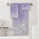 Dieses trendige, schicke Badetuch-Set mit hübsch silber funkelndem Imitat Glitzer auf lila gebürstetem metallischem Hintergrund ist einfach zu personalisieren.