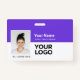 Dieses lila Mitarbeiter ID Abzeichen mit Foto, Scan Bar Code oder Qr-Code und Firmenlogo ist einfach zu personalisieren. Ein einfaches Business-Design in lebhaften Neon-lila-Weiß-Farbtönen, das vollständig anpassbar ist, Sie können jeden Farbhintergrund in Vorder- und Rückseite wählen, serifenlos einfache und moderne Schriftart und ein berufliches und klares Aussehen. Diese Standard-ID-Abzeichen sind mit einem Lanyard, einer Metallklammer oder mit einer Retraktable erhältlich. Mit dem Graphic Design Editor können Sie Ihre ID-Abzeichen-Karten individuell anpassen, indem Sie eine beliebige Hintergrundfarbe und einen beliebigen Schriftart auswählen. Keine Mindestbestellung.