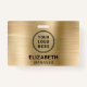 Modernes, gebürstetes Imitat mit metallischem Namen Abzeichen mit Ihrem Firmenlogo. Fügen Sie einen Namen und einen Jobtitel in einfacher Typografie hinzu.