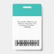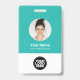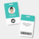 Dieses Abzeichen für den benutzerdefinierten Mitarbeiternamen kann einfach mit Round Profil ID Foto, Scan Bar Code und Business Logo personalisiert werden. Ein einfaches Business-Design in türkisfarbenen, hellblauen und weißen Farbtönen, das in Vorder- und Rückengrößen vollständig anpassbar ist, serifenlose, einfache und moderne Schriftart und ein berufliches und klares Aussehen. Erhältlich mit Lanyard, Metallklammer oder mit Retraktikett. Keine Mindestbestellung.