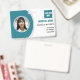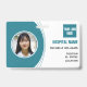 Dieses horizontale Foto ID Abzeichen zeichnet sich durch ein modernes, weißes und hellblaues Design aus. Individuell mit dem Namen und Logo Ihres Krankenhauses und Ihrem Foto, Namen, Position, ID und Standort. Die Rückseite zeigt nützliche personalisierbare Informationen im Falle eines Verlustes.