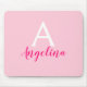 Personalisiertes Monogramm, gürlich blasses, rosafarbenes Mauspad mit weißem und scharf rosa Schrift. Dieses hübsche Mauspad kann leicht mit Ihrem eigenen Vornamen und Monogramm Initial personalisiert werden. Sie können sogar die Textfarbe und den Stil des Schriftartes mit der Option Anpassen ändern.